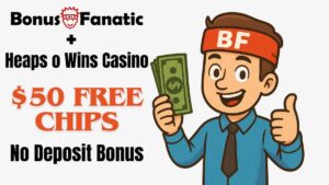 Znakomity i ekskluzywny bonus bez depozytu w kasynie Heaps O Wins. Gracze mogą skorzystać z hojnej promocji! Kasyno oferuje wszystkim nowym graczom darmowy żeton o wartości 50 $ do wykorzystania w szerokiej gamie automatów, Keno, gier stołowych i pokera wideo. Aby ubiegać się o ten bonus, po prostu wykorzystaj kod kuponu 50PLAYCHIP po rejestracji. Bonus będzie aktywny 30 dni od jego otrzymania. Poniżej znajdziesz informacje na temat wymagań dotyczących zakładów i innych warunków.